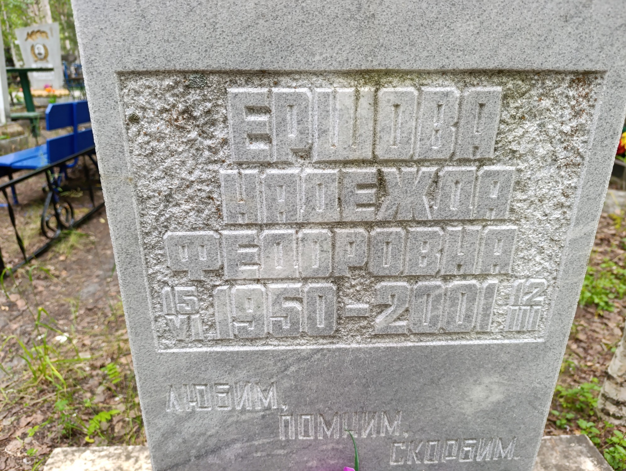 Дата рождения: 15.06.1950 Дата смерти: 12.03.2001 Наличие ограды: Нет Кладбище: Чернореченское II этап Секция кладбища: 12 Номер ряда: 1 Номер захоронения: 261 Вид захоронения: В землю Координаты: