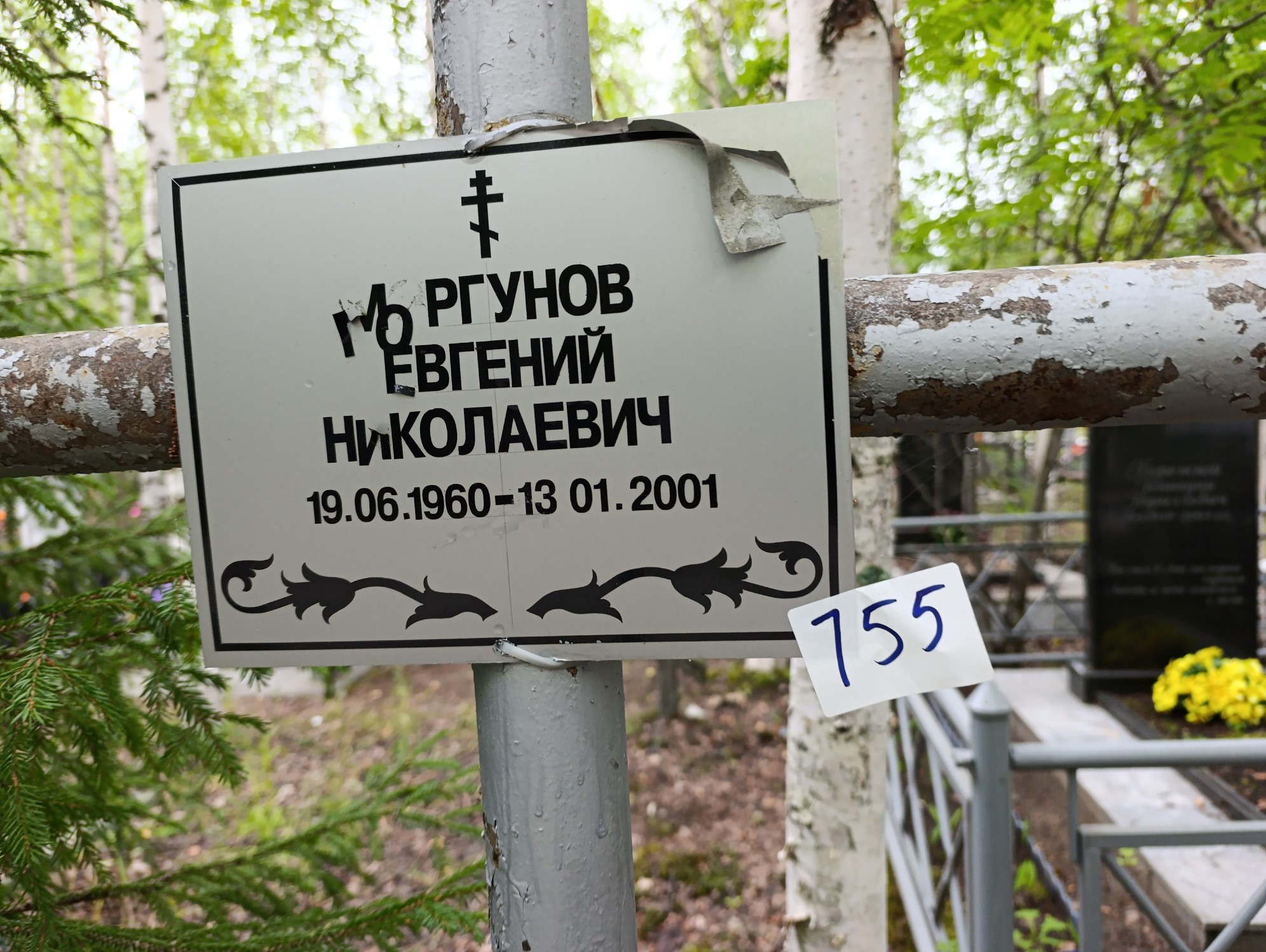 Дата рождения: 19.06.1960 Дата смерти: 13.01.2001 Наличие ограды: Нет Кладбище: Чернореченское II этап Секция кладбища: 12 Номер ряда: 1 Номер захоронения: 755 Вид захоронения: В землю Координаты: