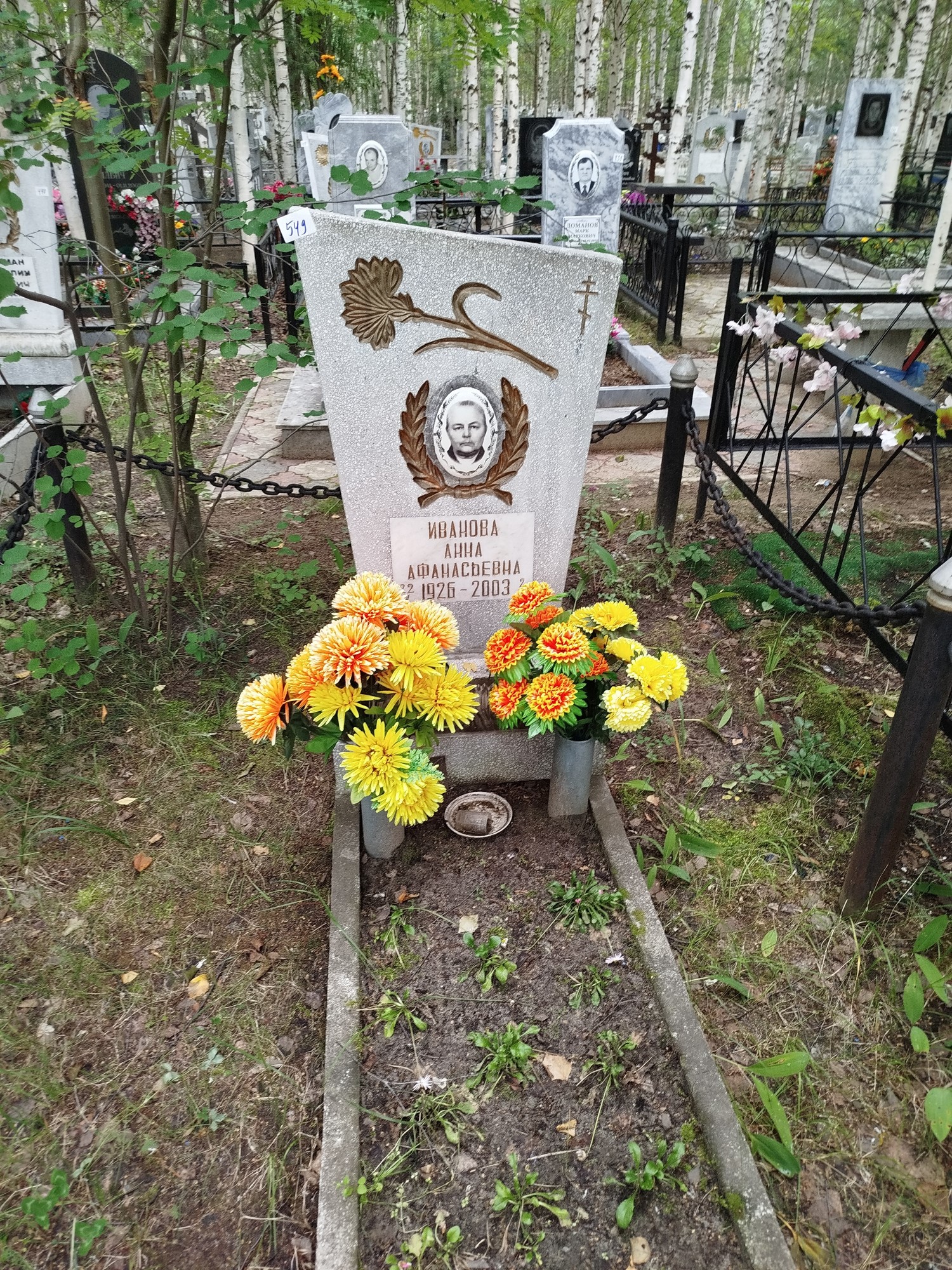 Дата рождения: 22.05.1926 Дата смерти: 02.11.2003 Наличие ограды: Нет Кладбище: Чернореченское II этап Секция кладбища: 15 Номер ряда: 1 Номер захоронения: 549 Вид захоронения: В землю Координаты: