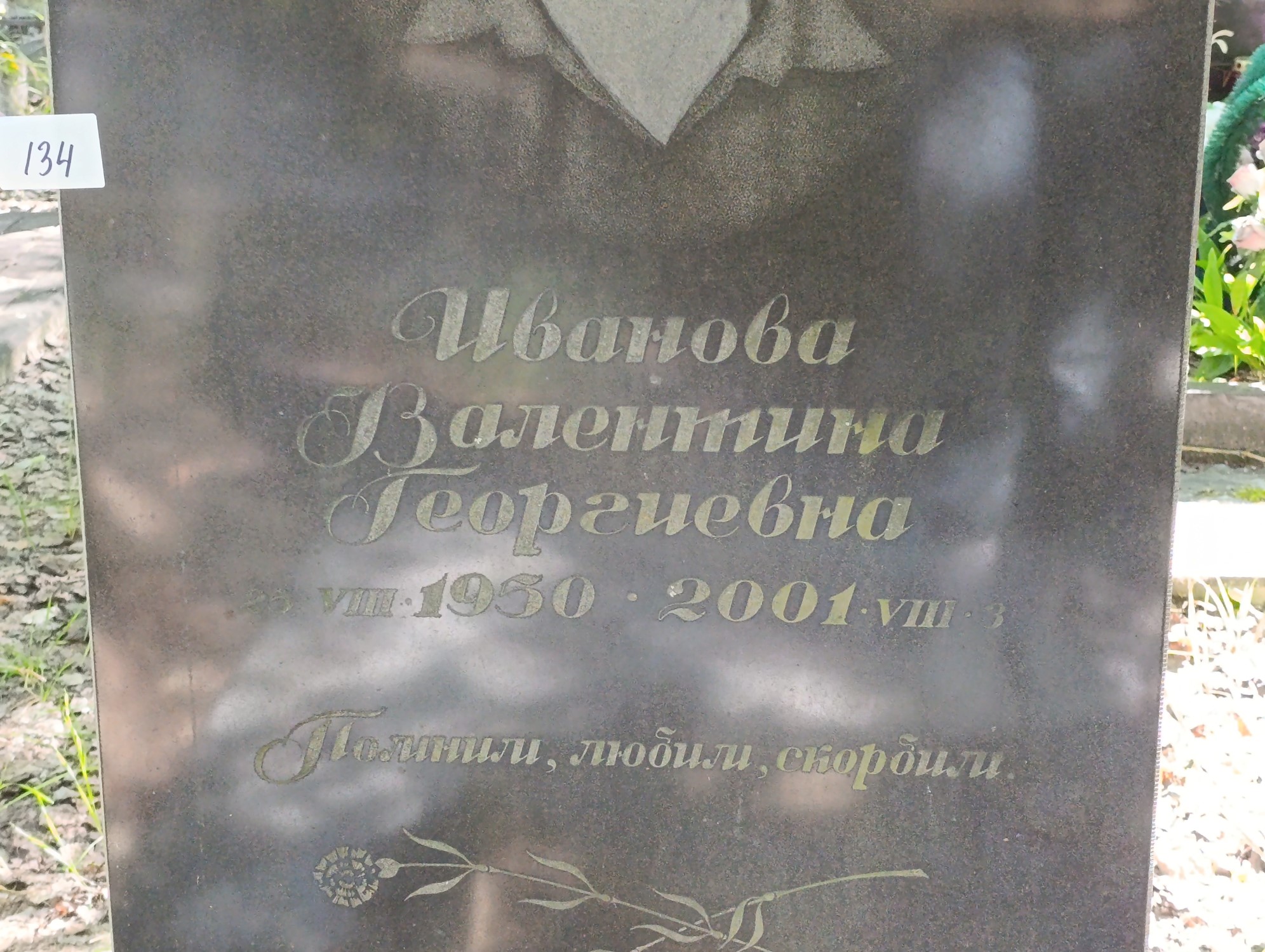 Дата рождения: 01.08.1950 Дата смерти: 03.08.2001 Наличие ограды: Нет Кладбище: Чернореченское II этап Секция кладбища: 2 Номер ряда: 1 Номер захоронения: 134 Вид захоронения: В землю Координаты: