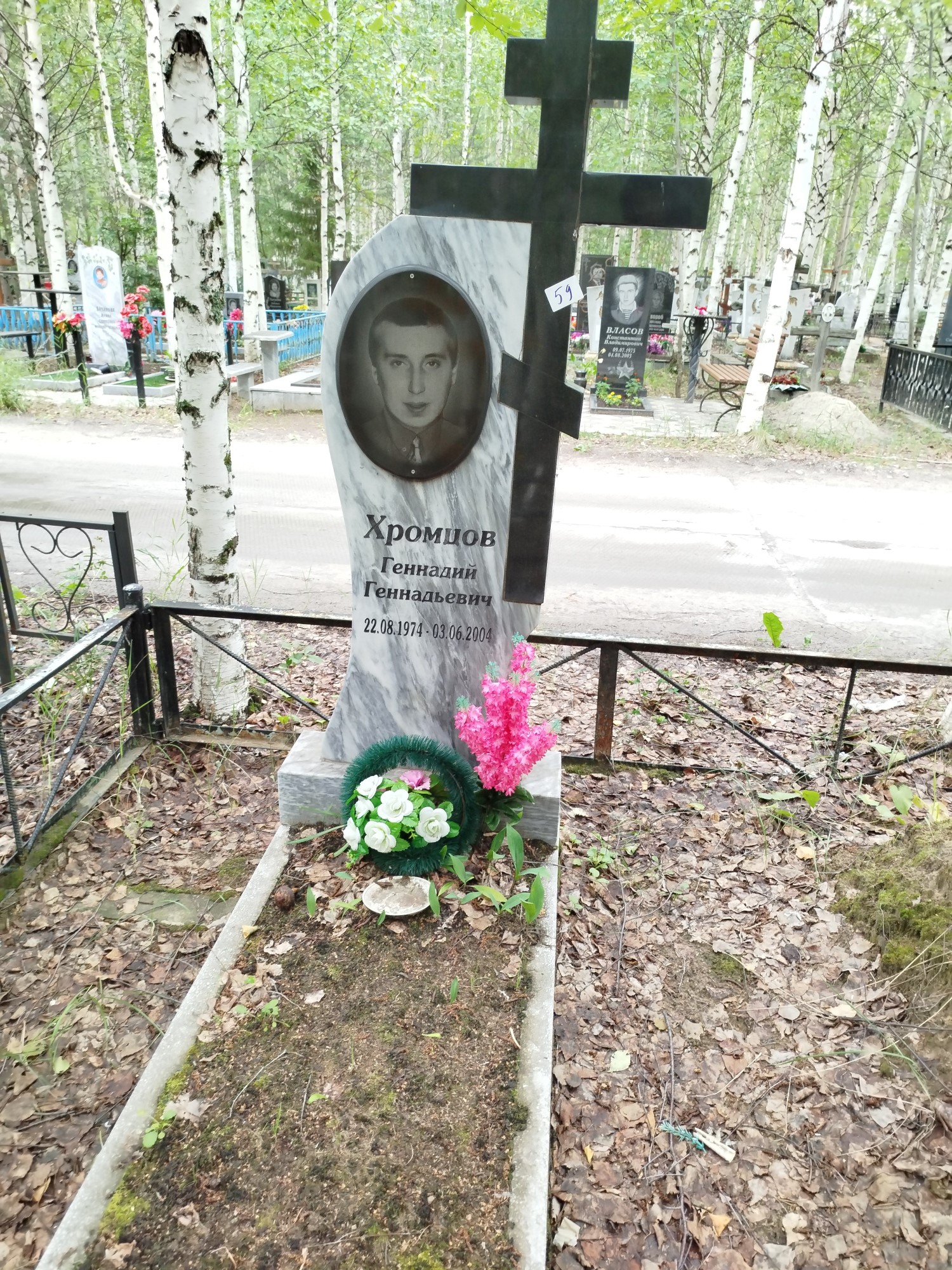 Дата рождения: 22.08.1974 Дата смерти: 03.06.2004 Наличие ограды: Нет Кладбище: Чернореченское II этап Секция кладбища: 15 Номер ряда: 1 Номер захоронения: 59 Вид захоронения: В землю Координаты: