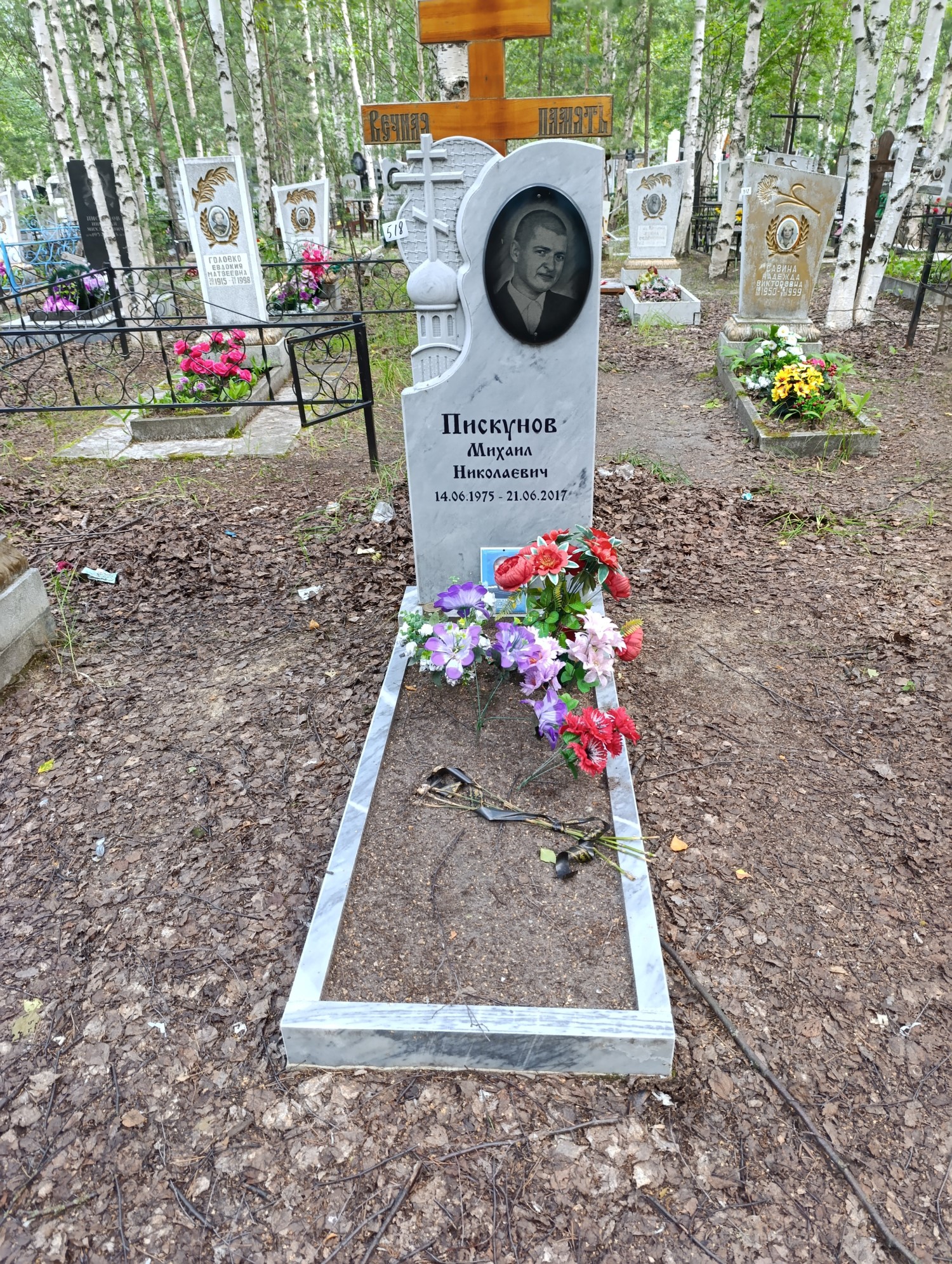 Дата рождения: 14.06.1975 Дата смерти: 21.06.2017 Наличие ограды: Нет Кладбище: Чернореченское II этап Секция кладбища: 8 Номер ряда: 1 Номер захоронения: 518 Вид захоронения: В землю Координаты: