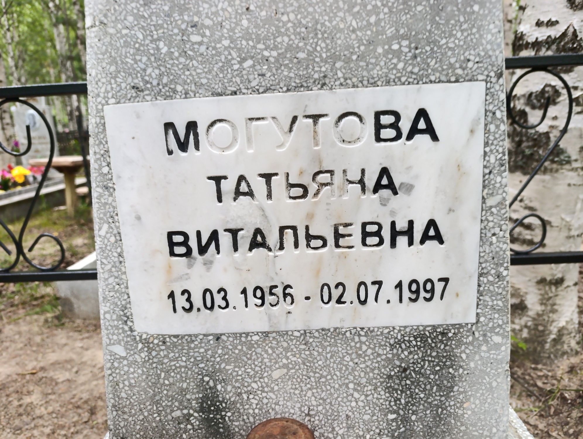 Дата рождения: 13.03.1956 Дата смерти: 02.07.1997 Наличие ограды: Нет Кладбище: Чернореченское II этап Секция кладбища: 4 Номер ряда: 1 Номер захоронения: 939 Вид захоронения: В землю Координаты: