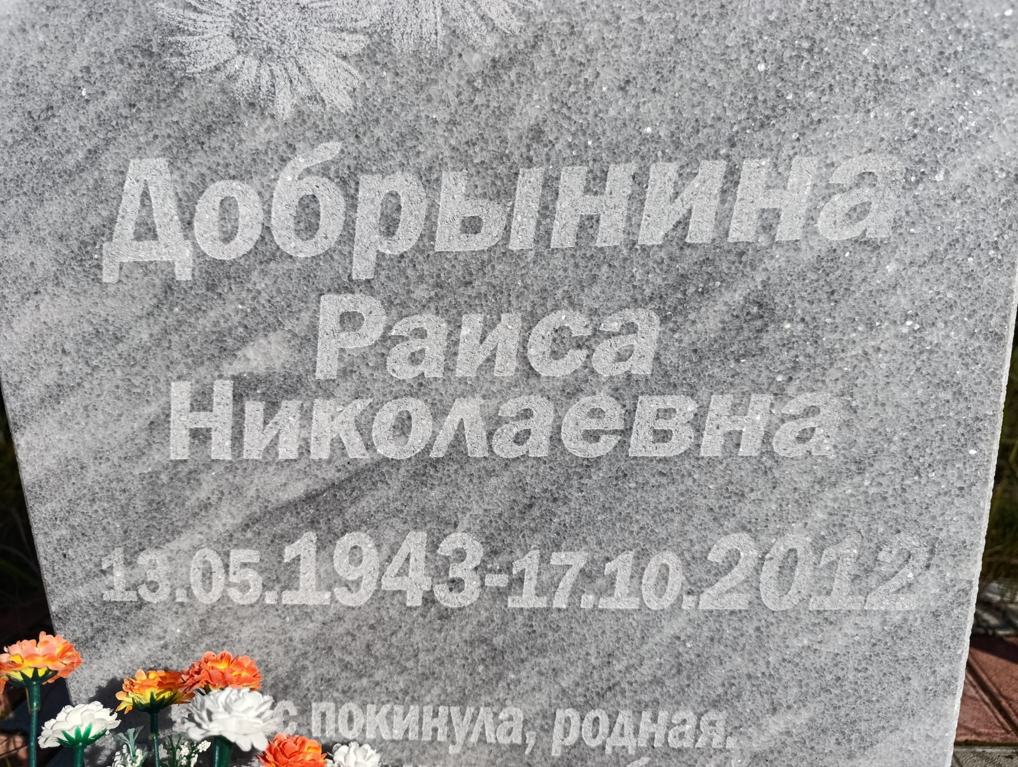 Дата рождения: 13.05.1943 Дата смерти: 17.10.2012 Наличие ограды: Нет Кладбище: Чернореченское III этап Секция кладбища: 9 Номер ряда: 1 Номер захоронения: 267 Вид захоронения: В землю Координаты: