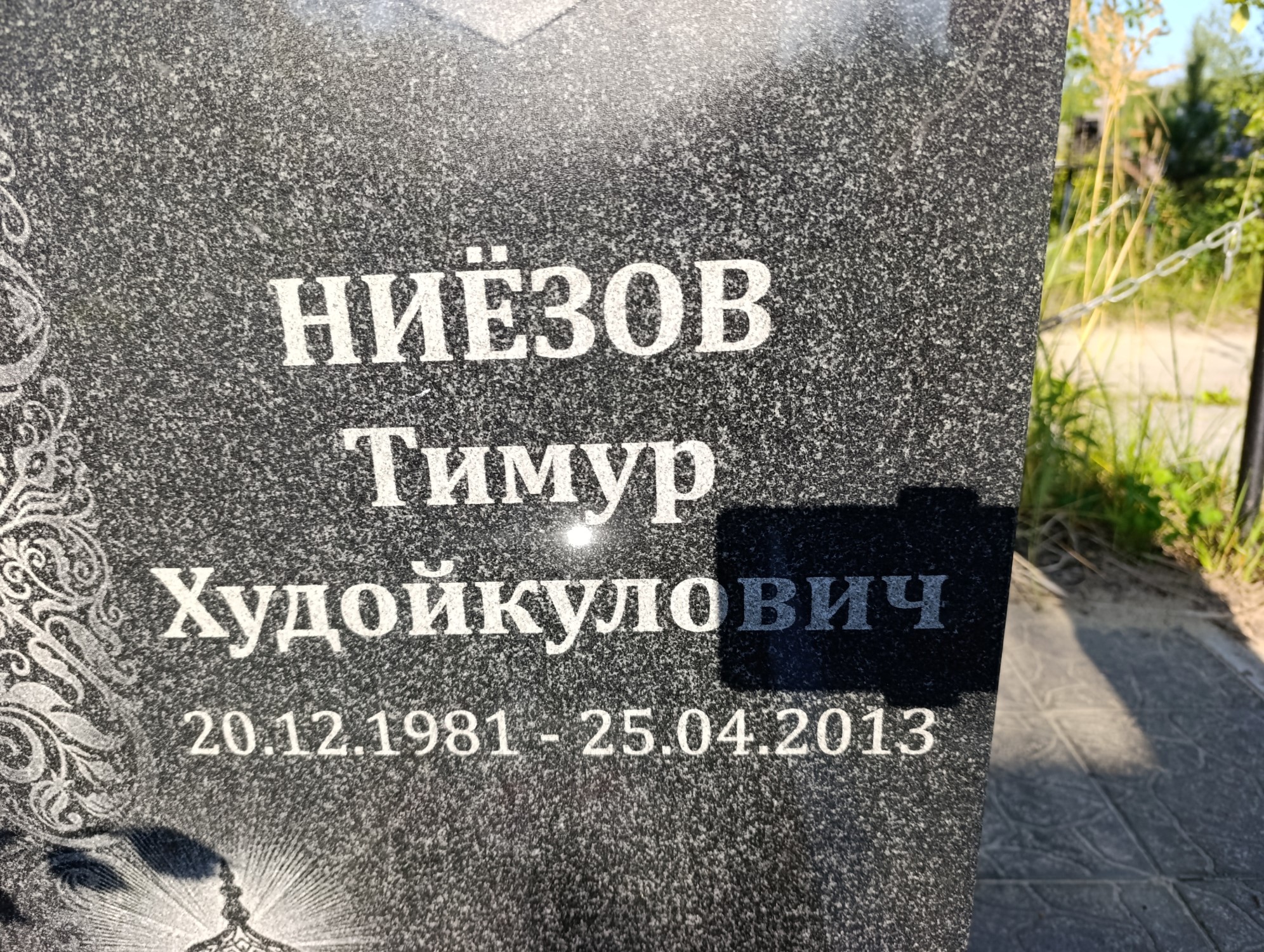 Дата рождения: 20.12.1981 Дата смерти: 25.04.2013 Наличие ограды: Нет Кладбище: Чернореченское III этап Секция кладбища: 13 Номер ряда: 1 Номер захоронения: 7 Вид захоронения: В землю Координаты: