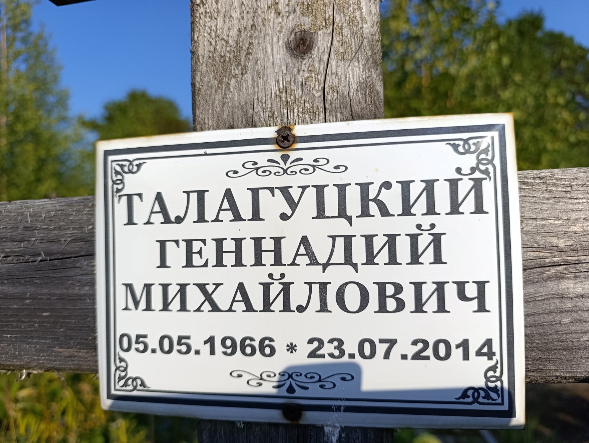 Дата рождения: 05.05.1966 Дата смерти: 23.07.2014 Наличие ограды: Нет Кладбище: Чернореченское III этап Секция кладбища: 15 Номер ряда: 1 Номер захоронения: 211 Вид захоронения: В землю Координаты: