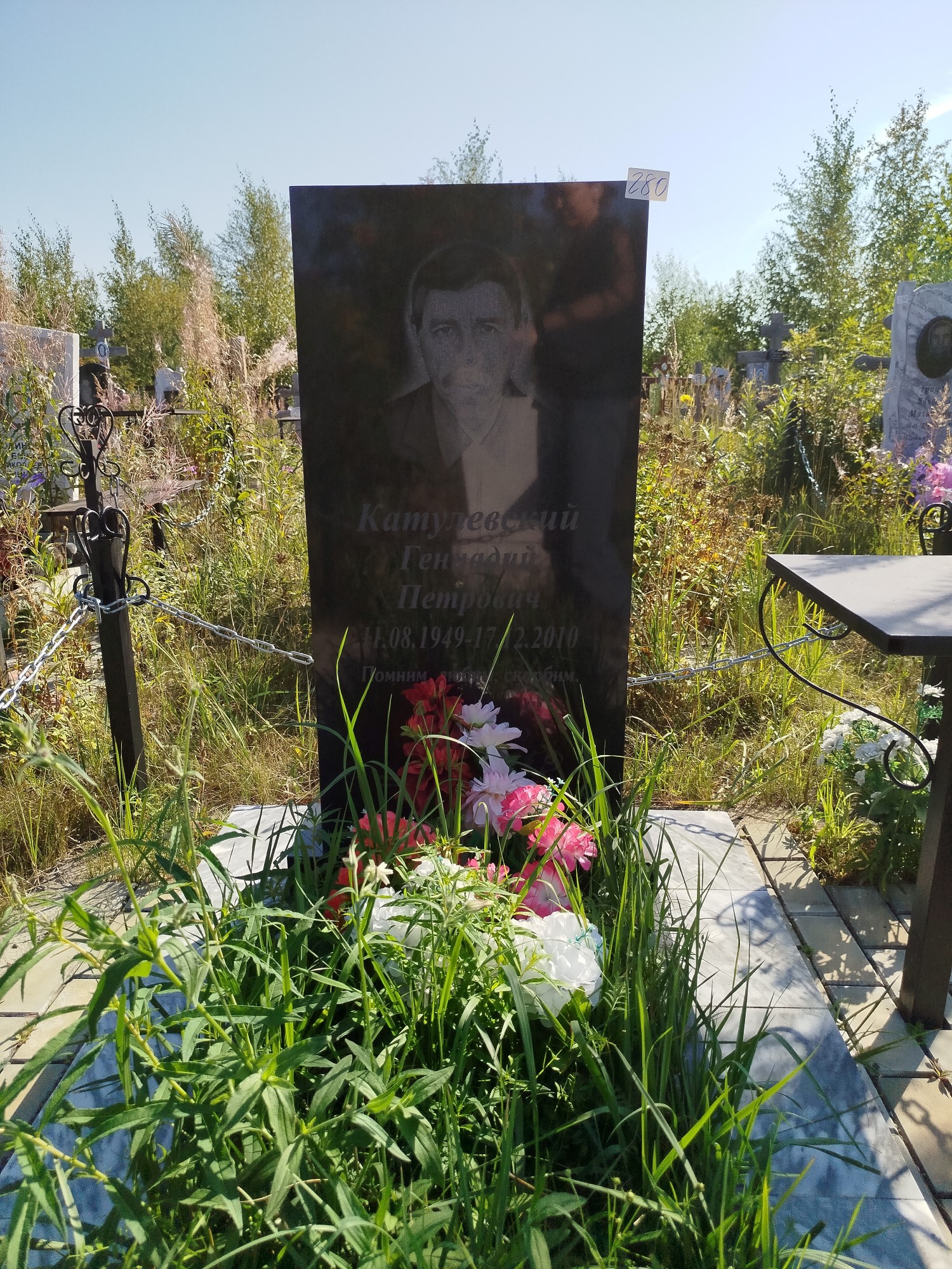 Дата рождения: 11.08.1949 Дата смерти: 17.12.2010 Наличие ограды: Нет Кладбище: Чернореченское III этап Секция кладбища: 6 Номер ряда: 1 Номер захоронения: 280 Вид захоронения: В землю Координаты: