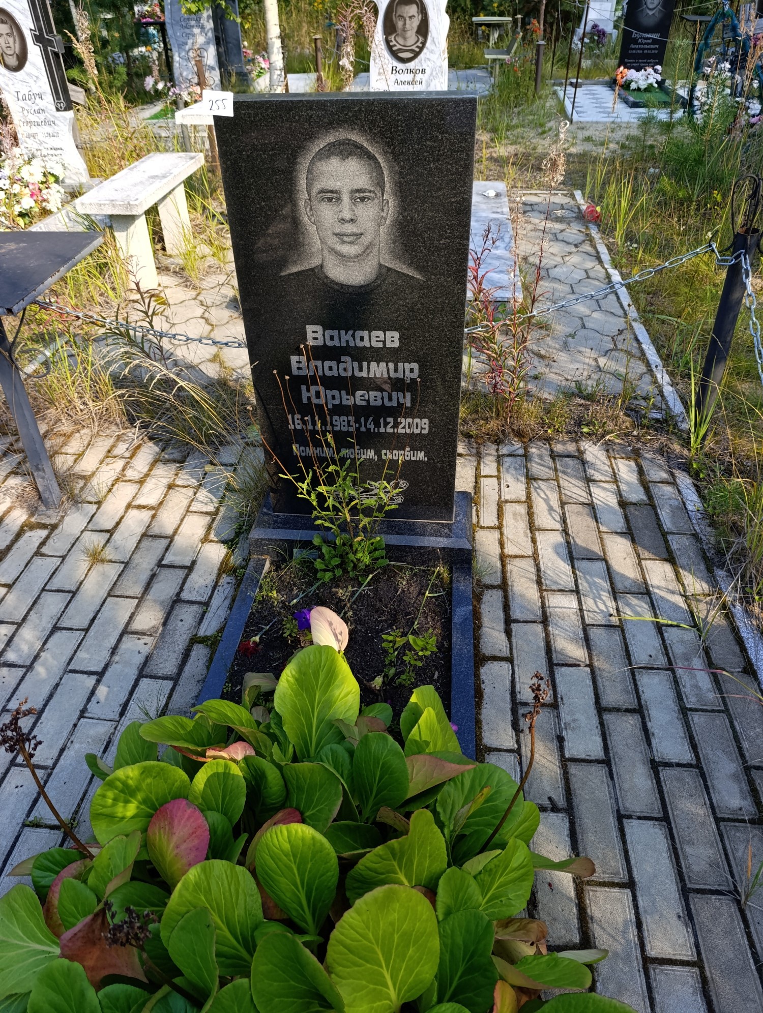 Дата рождения: 16.11.1983 Дата смерти: 14.12.2009 Наличие ограды: Нет Кладбище: Чернореченское III этап Секция кладбища: 4 Номер ряда: 1 Номер захоронения: 255 Вид захоронения: В землю Координаты: