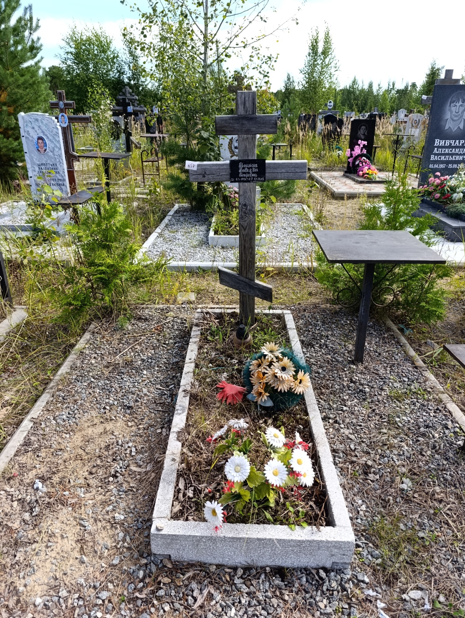 Дата рождения: 21.08.1951 Дата смерти: 07.01.2015 Наличие ограды: Нет Кладбище: Чернореченское III этап Секция кладбища: 16 Номер ряда: 1 Номер захоронения: 657 Вид захоронения: В землю Координаты: