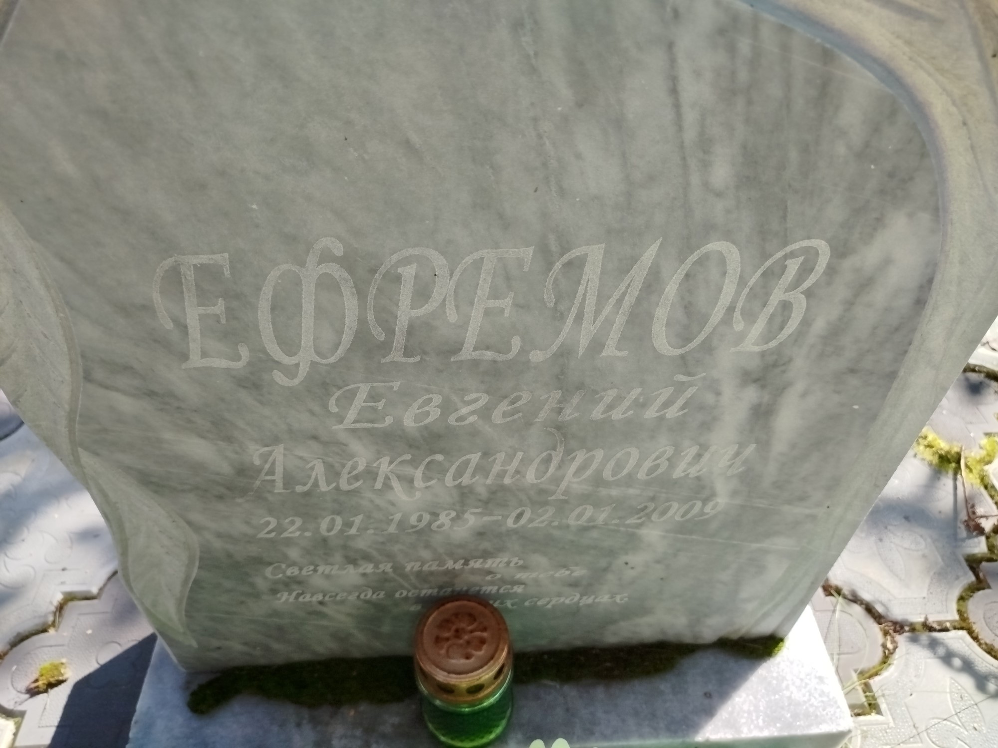 Дата рождения: 22.01.1985 Дата смерти: 02.01.2009 Наличие ограды: Нет Кладбище: Чернореченское III этап Секция кладбища: 3 Номер ряда: 1 Номер захоронения: 585 Вид захоронения: В землю Координаты: