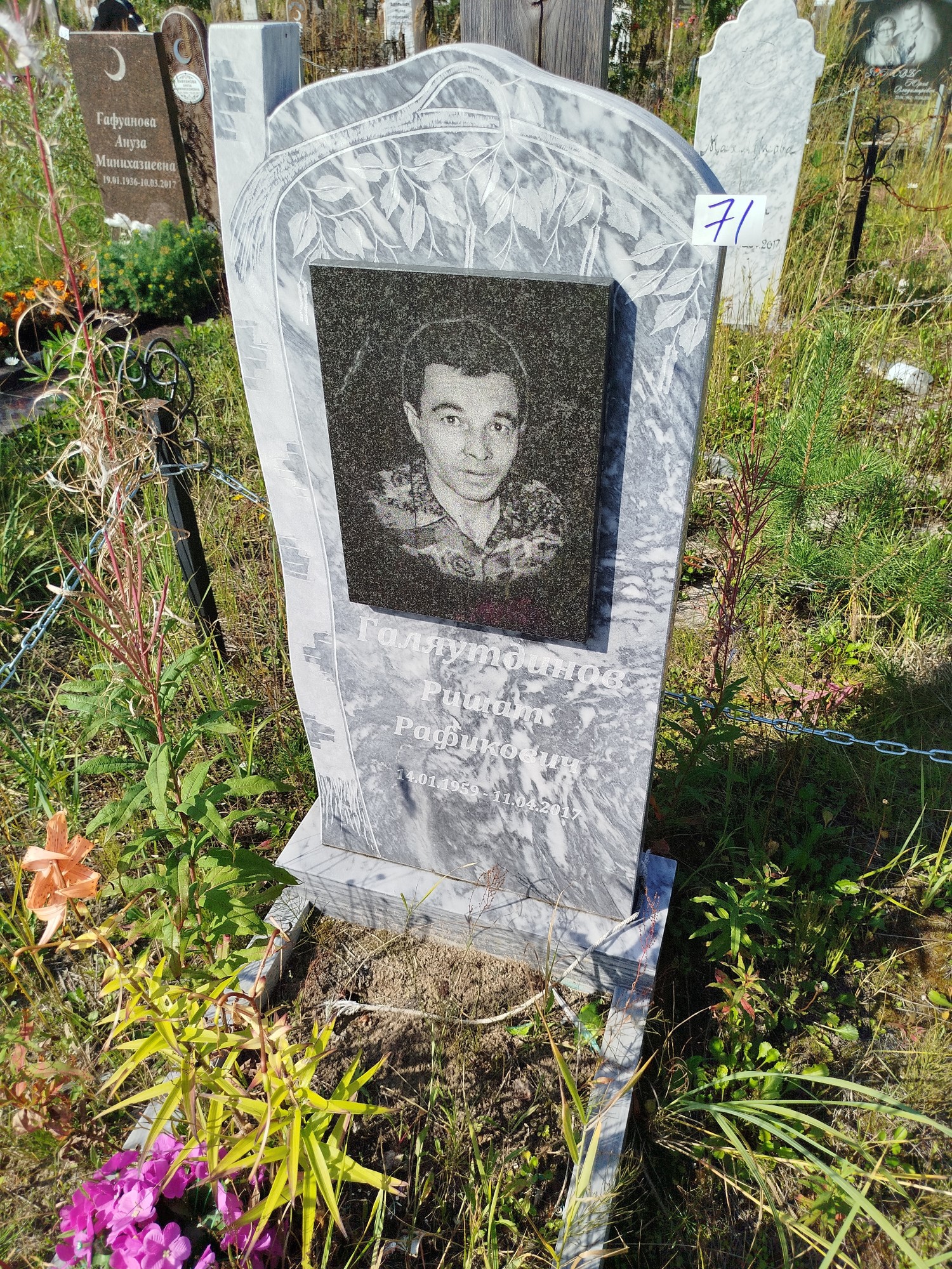 Дата рождения: 14.01.1959 Дата смерти: 11.04.2017 Наличие ограды: Нет Кладбище: Чернореченское III этап Секция кладбища: 14 Номер ряда: 1 Номер захоронения: 71 Вид захоронения: В землю Координаты: