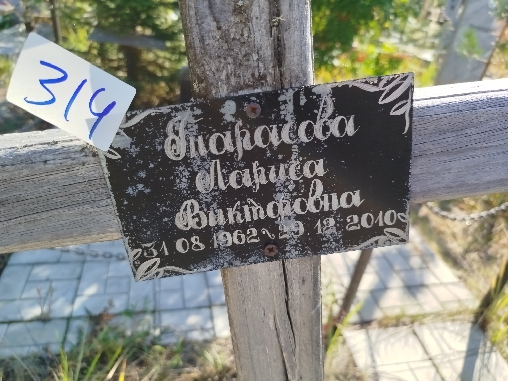 Дата рождения: 31.08.1962 Дата смерти: 29.12.2010 Наличие ограды: Нет Кладбище: Чернореченское III этап Секция кладбища: 6 Номер ряда: 1 Номер захоронения: 314 Вид захоронения: В землю Координаты: