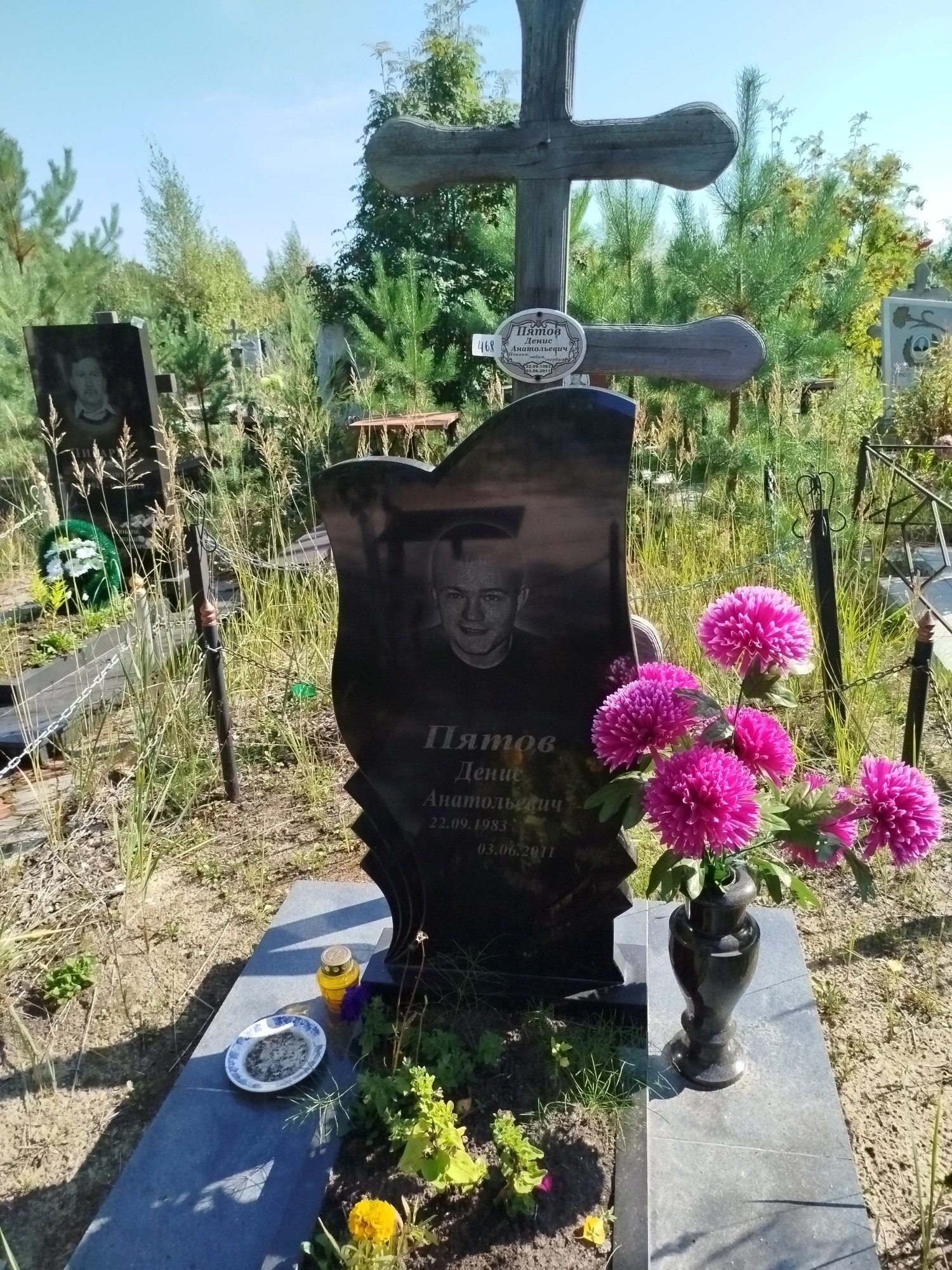 Дата рождения: 22.09.1983 Дата смерти: 03.06.2011 Наличие ограды: Нет Кладбище: Чернореченское III этап Секция кладбища: 6 Номер ряда: 1 Номер захоронения: 468 Вид захоронения: В землю Координаты: